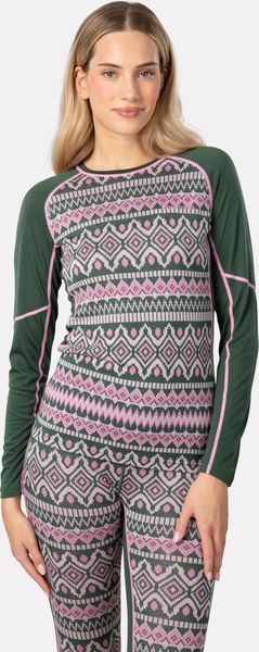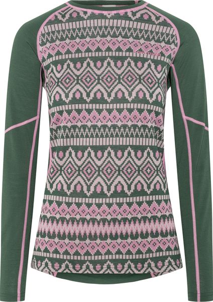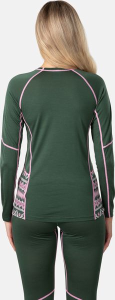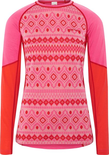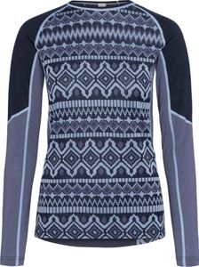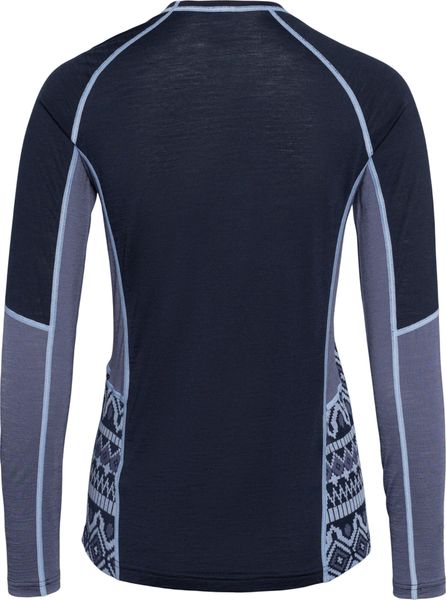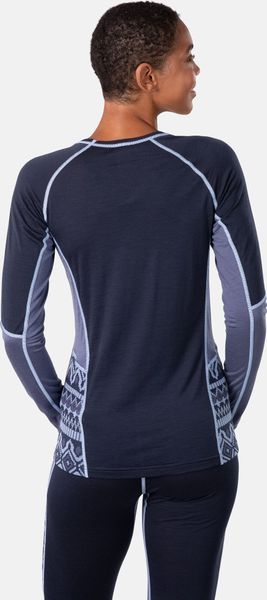 The Kari Traa Malia Long Sleeve is a slim fit baselayer made from a blend of merino wool and Tencel for warmth, quick drying and comfort, with a jacquard knit.