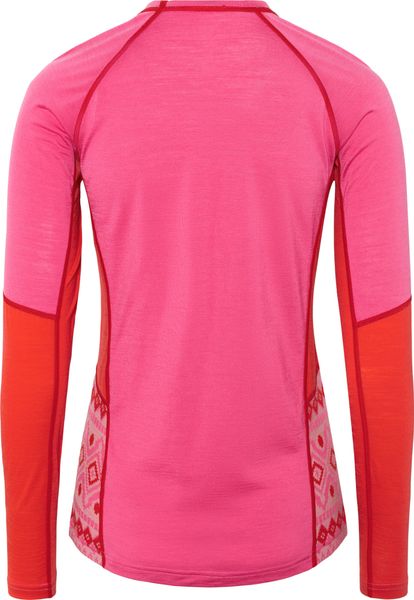 "The design of the Malia longsleeve features a stylish jacquardknit pattern on the front and contrasting inserts that are not only visually appealing but also functional by wicking away moisture. This garment combines functionality, style and environmental awareness in one, making it a must-have for any active woman looking for the perfect baselayer."