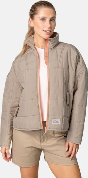 "Water-repellent women's jacket with sustainable production, ideal for leisure and hiking, offers warmth and style."