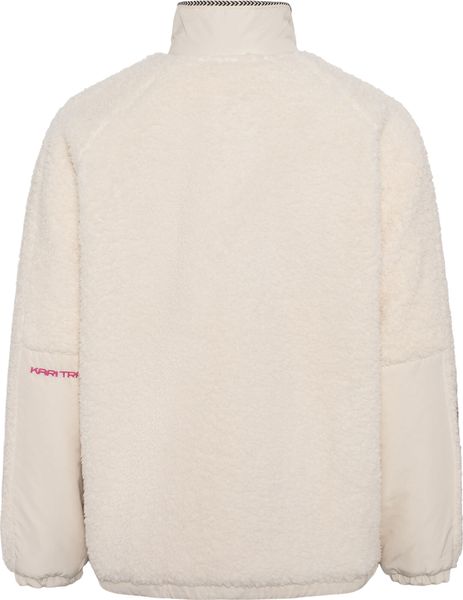 "The Kari Traa Olivia jacket is the ideal garment for active women who value both style and functionality. Perfect for mountaineering, alpine tours and hikes, this jacket offers maximum freedom of movement thanks to its loose cut and voluminous raglan sleeves. Practical details such as the press stud placket on the front, an adjustable drawstring at the hem and elasticated cuffs ensure that you are well equipped for every adventure. The jacket also features a back loop with zipper garage and practical hand pockets that offer additional comfort."