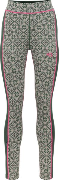 "The Kari Traa Rose High Waist Pant is the perfect choice for women who don't want to compromise on style and comfort even in cooler temperatures. Made from high-quality merino wool, these leggings provide excellent insulation, whether it's wet or dry. Thanks to the use of ultra-soft 19.5 micron merino wool fibers, they are particularly comfortable on the skin and offer a luxurious feel. The dense jacquard knitted waistband ensures a secure fit, while the flattering lines of the trousers accentuate your silhouette."