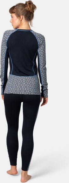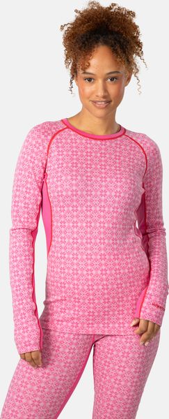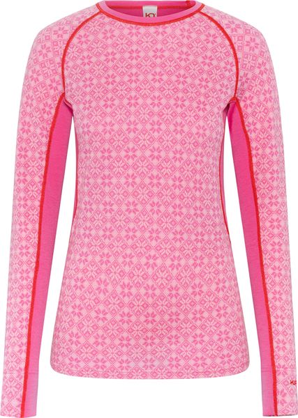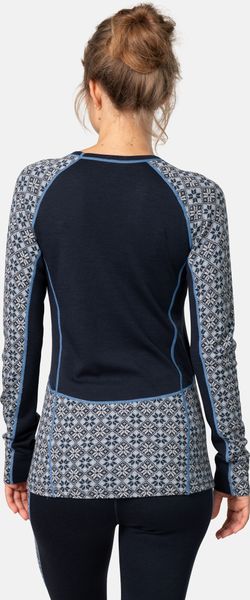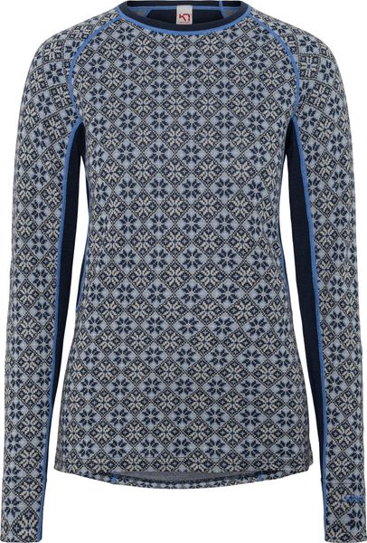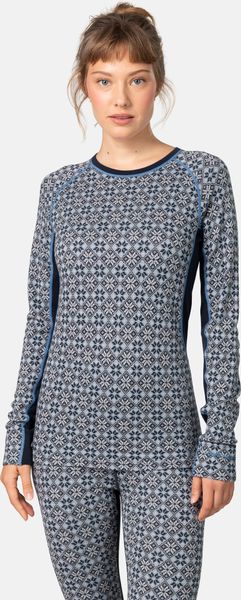The Kari Traa Rose Light Long Sleeve is a lightweight, thin merino baselayer with a sophisticated, feminine Nordic-inspired floral design and a slim, athletic silhouette.