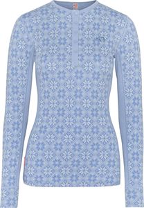"The Kari Traa Rose Longsleeve is the ideal companion for active women who value style and functionality. This mid-weight baselayertop made from high-quality merino wool features an elegant, feminine design with Nordic-inspired floral patterns. The ultra-soft 19.5-micron-merino wool ensures a luxurious feel and provides excellent insulation in both wet and dry conditions. Thanks to the smart fabric construction, the longsleeve allows you to move freely, while the slimfit cut emphasizes a slim, sporty silhouette."