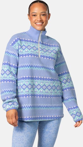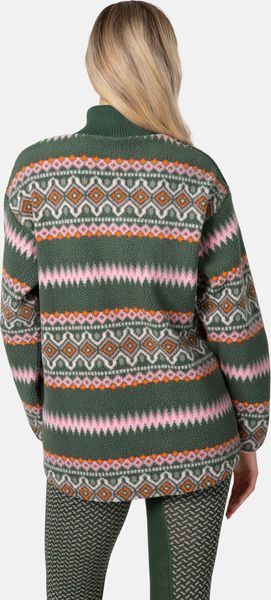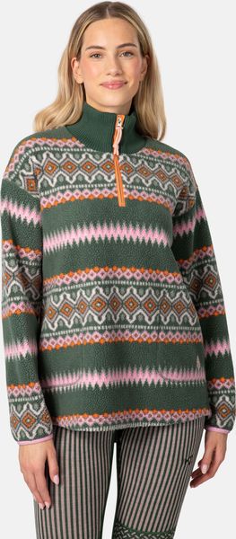 The cozy and eco-friendly Kari Traa Ruthie Midlayer Half Zip has a booty-covering length, hand pockets and a unique Norwegian pattern that ensures style and comfort don't have to take a back seat