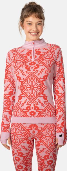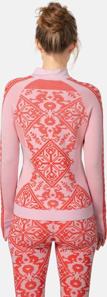 "This baselayer not only impresses with its functionality, but also with its Scandinavian-inspired knitted patternlook, which is subtle yet stylish. The strategically placed mesh inserts and half zip fastening ensure optimum ventilation to keep you comfortable even during intense activity. The practical thumb loops keep the sleeves in place and offer additional protection against cold."