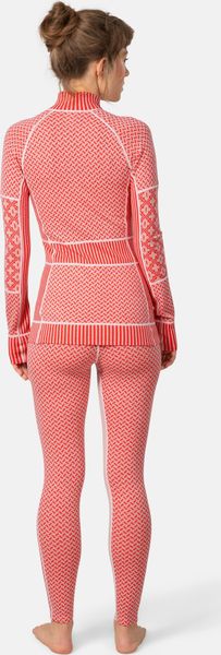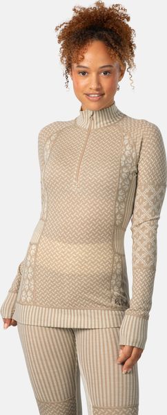 "The Kari Traa Smekker Half-Zip is the ideal companion for women who value functionalityu00e4t and style. Made from high-quality merino wool, this base layer not only offers a luxurious feel, but also excellent insulation properties, regardless of whether it is wet or dry. The jacquardknit pattern gives the garment a playful yet flattering look that hugs the body perfectly thanks to the slim-fit cut."