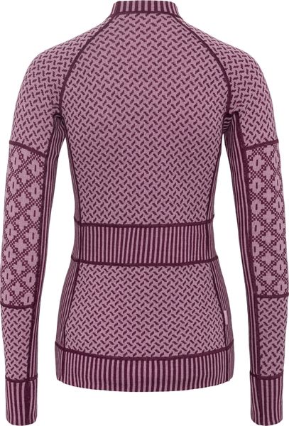 "The well thought-out construction with inserts under the arms and a front zip allows optimum ventilation and freedom of movement. A special highlight is the zipper chin guard, which protects your skin with a soft zipper garage for added comfort. The jacquard knit pattern gives the long sleeve top a playful look, while the natural warmth and odor resistance of the wool ensure that you always feel comfortable, even in adverse conditions."