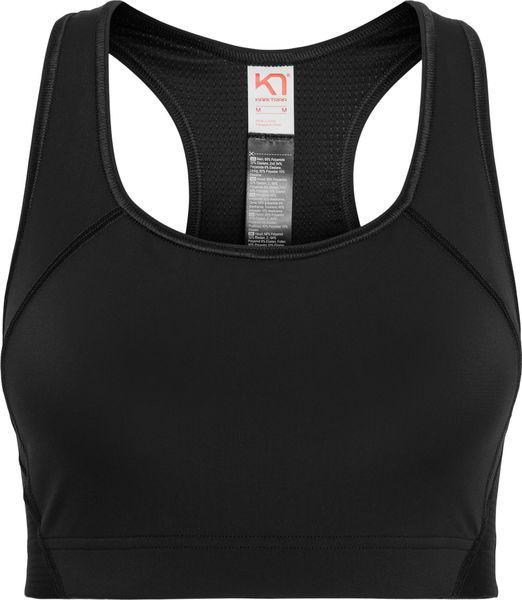 "The Kari Traa Trud sports bra is the ideal companion for active women who want reliable support when running or working out. This compression-sport bra offers a slim fit that adapts perfectly to the body and provides medium support. Thanks to the moisture-wicking and quick-drying materials, you will stay cool and dry even during intense workouts. The sophisticated body mapping construction and strategic meshventilation ensure optimum ventilation and maximum comfort. The front movement control guarantees that everything stays securely in place so that you can concentrate fully on your performance"