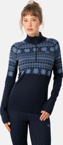 "The Vilma Half Zip by Kari Traa is the ideal baselayer for women who value warmth and comfort. Made from 100% ethically sourced merino wool, this slim fit pullover offers excellent insulation properties, even in wet conditions. The high-quality wool fibers with a thickness of 19.5 microns ensure a luxuriously soft feel. The Vilma Half Zip impresses with its elegant jacquard knit pattern, reminiscent of soft snowfall, and combines style with functionality."