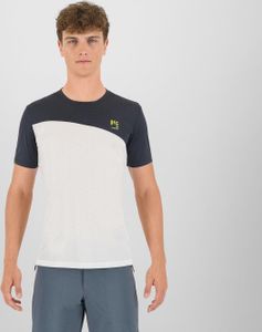 "The Averau Jersey from Karpos is the ideal shirt for anyone who likes to go on long hikes and trekking tours. With its simple and functional design, it allows you to experience nature in all its glory. Inspired by the majestic Dolomites, the Averau jersey gives you the freedom to concentrate fully on your adventure. The round neckline and low-cut sleeves ensure optimum comfort, while the asymmetric graphic gives the shirt a special touch. Weighing just 98 grams, it is incredibly lightweight, yet breathable and stretchy, making it the perfect companion for summer activities"