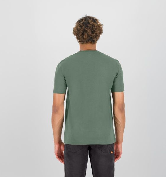 "Breathable men's T-shirt made from organic cotton, ideal for outdoor activities such as hiking and climbing."