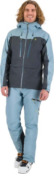 "Wind and waterproof men's jacket for ski tours, made from recycled material with an adjustable hood and high breathability."
