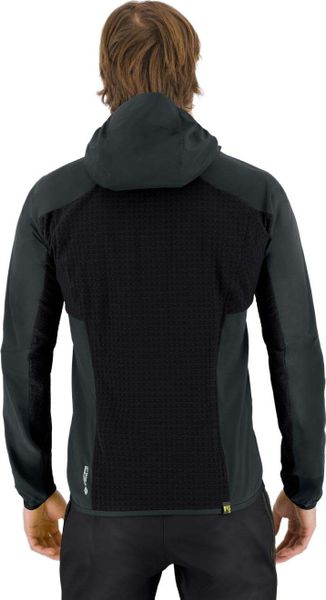 "The design of the jacket is well thought out and practice-oriented. The anatomically cut hood with fixed visor reliably protects against wind and weather, while the elasticated cuffs and hem ensure a comfortable fit. The robust YKK zips, including a die-cast front zip, guarantee smooth opening and closing. Practical details such as the two full-length bellows pockets with two-wege-reiu00fcs fasteners allow easy access to your utensils, even when wearing a climbing or rucksack harness."
