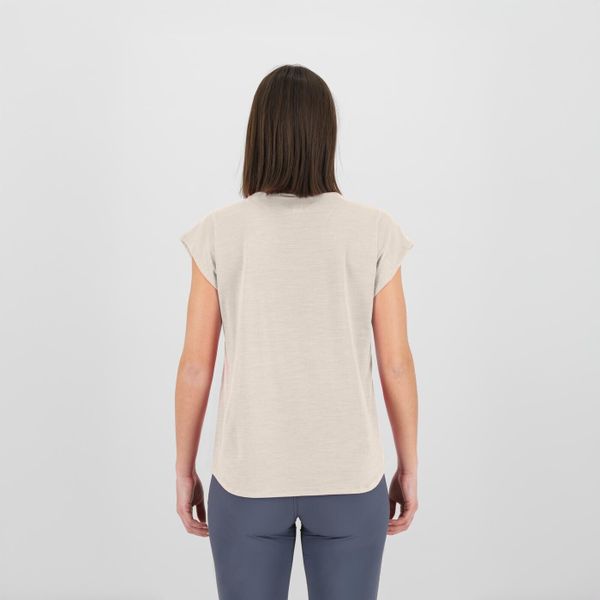 "Comfortable women's T-shirt made from merino wool, ideal for hiking and leisure with excellent breathability."