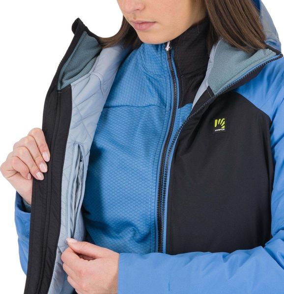 "The Vinson EVO W Jacket from Karpos is the ideal companion for demanding ski tours and freeskiingadventures. This women's jacket combines lightness, reliable protection and excellent compressibility in a modern design. The innovative hybrid construction with K-Dry material not only ensures waterproofness, but also outstanding breathability of 70,000 g/m2/24h, so you stay pleasantly dry even during intensive activities"