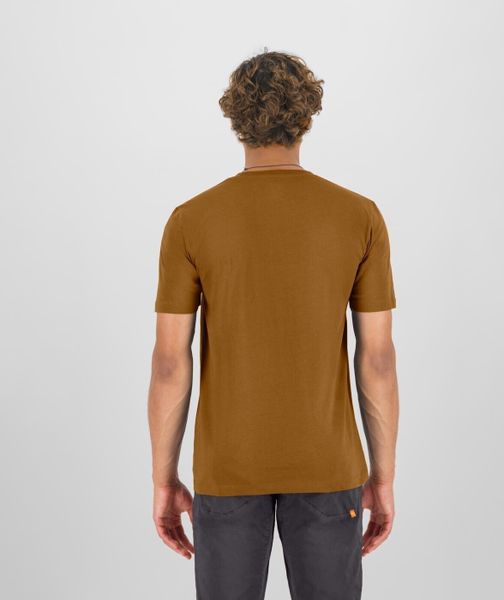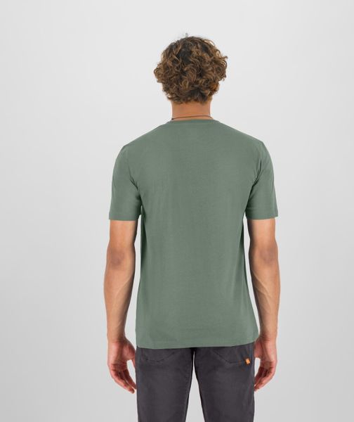 "Breathable men's T-shirt made from organic cotton, ideal for outdoor activities and environmentally conscious adventurers."