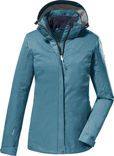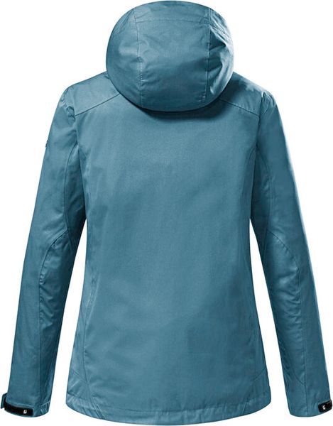 "The KOS 133 KG women's jacket from killtec is the perfect choice for anyone who doesn't want to compromise on comfort and style in wind and weather. This windproof functional jacket is specially designed in a short size, which means that both the sleeves and the torso are shortened, making it ideal for smaller statures. With an impressive waterproofness of 10,000 mm and welded seams, the jacket offers excellent protection against rain and moisture. The breathable membrane ensures that moisture is transported from the inside to the outside, which ensures a pleasant wearing climate."