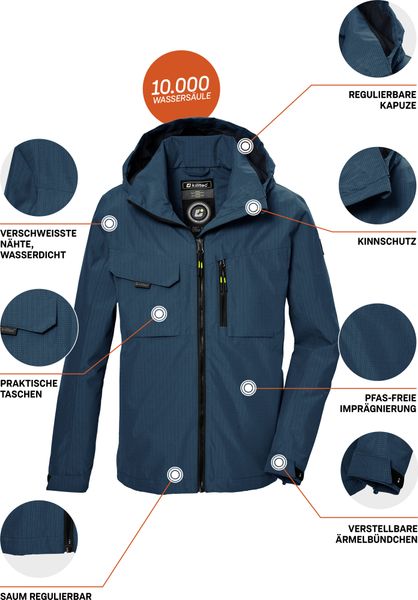 "The KOS 140 Boys Jacket from killtec is the ideal functional jacket for active children who want to be out and about in all weathers. This jacket offers excellent protection from wind and rain thanks to a water column of 10,000 mm and welded seams that ensure absolute waterproofness. The adjustable hood offers additional protection, while the PFAS-free impregnation is an environmentally friendly choice"