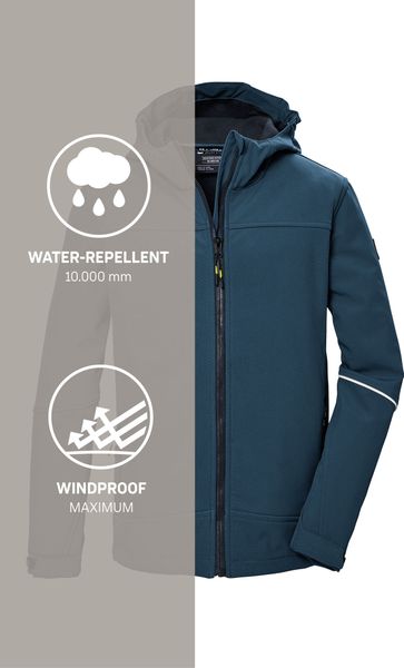 "This versatile softshell jacket for children is an indispensable companion for cold summer days and the transition period. With an impressive waterproof rating of 10,000 mm, it offers excellent protection from wind and water without compromising on breathability. The breathable mesh insert, together with the soft fleece in the back, ensures optimum comfort and keeps the little ones nice and warm."