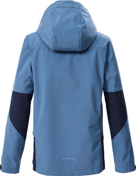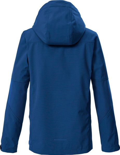 "The KOS 143 boys' softshell jacket from killtec is the ideal companion for active children on changeable days. Thanks to the windproof and water-repellent material with an impressive water resistance of 10,000 mm, it offers reliable protection in any weather during the transitional season. The subtle checked pattern gives the jacket a sportysimple look that can be combined in a variety of waysu00e4sst. The adjustable cuffs and adjustable hood, which is also equipped with a practical visor, ensure a perfect fit."