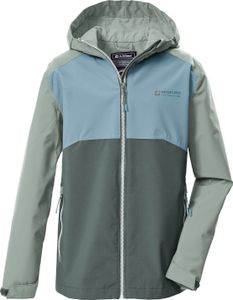 "The children's functional jacket from killtec in an eye-catching color block design combines a stylish look with high functionalityu00e4t. Thanks to the welded seams and impressive water resistance of 10,000 mm, your child will stay dry even in heavy rain and wind. The jacket is equipped with an adjustable hood with a practical peak for additional protection. The adjustable cuffs and elasticated hem ensure optimum comfort and an individual fit."