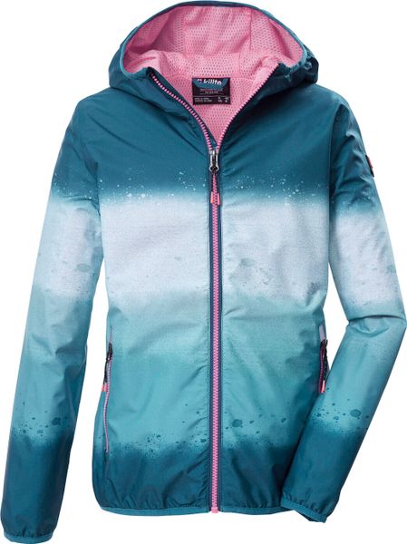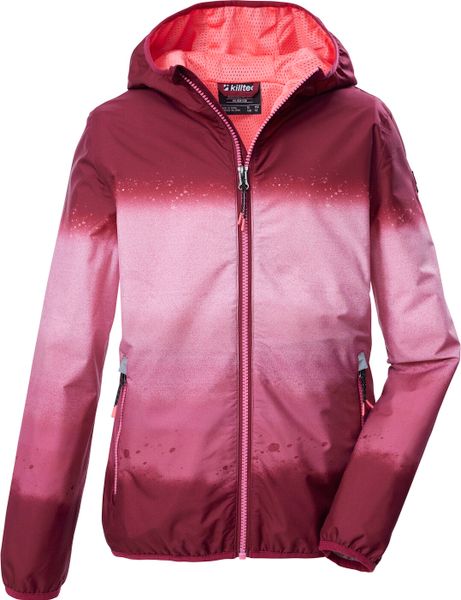 "The killtec girls' functional jacket is an essential piece of clothing for the transitional season that impresses with its unique all-over print with color gradient. This lightweight jacket not only offers a fashion highlight, but also impresses with its functional properties. With welded seams and an impressive water resistance of 10,000 mm, it provides reliable protection against wind and rain. The jacket is equipped with a fixed hood which, together with the elasticated hem and cuffs, provides an optimum fit and protection from the elements."