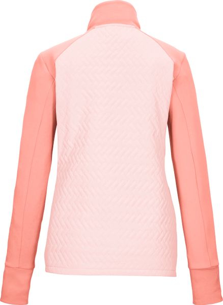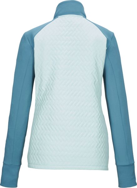"Stylish hybrid jacket with colorblock design, environmentally friendly, versatile as a midlayer or transition jacket."