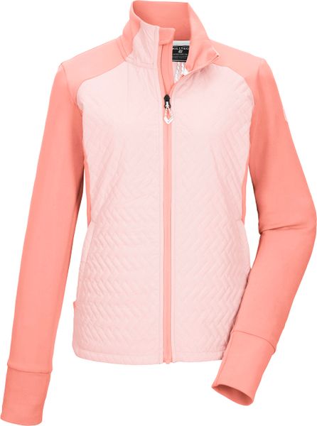 "The stylish women's hybrid jacket with stand-up collar from killtec is the ideal choice for fashion-conscious women who value functionality and design. This jacket impresses with its trendy colorblock design and is perfect both as a mid-layer under a weatherproof jacket and as a standalone transitional jacket. With its thin lining, it offers pleasant warmth without being bulky"