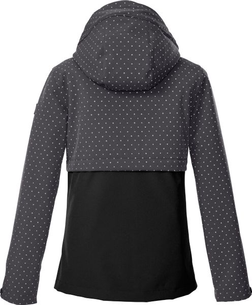 "The colorful softshell jacket for girls from killtec combines functionality with a modern color block design and a unique all-over print. It is the ideal choice for the transitional season, as it is windproof and water-repellent thanks to a 10,000 mm water repellent layer. The breathable mesh insert also ensures a comfortable fit. The back area and the adjustable hood are lined with soft fleece, which provides additional comfort and warmth."