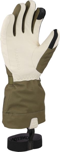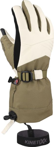"The KinetiXx Akima GTXu00ae gloves also offer a long cuff with One-Hand-Adjustment, which prevents snow from penetrating. A catch loop and the leather pull-on aid ensure a secure fit and make it easier to put on. Thanks to the adjustable wrist, the glove adapts perfectly to the individual hand shape. Available in classic black, modern white olive or elegant cream, these gloves are not only functional but also stylish."