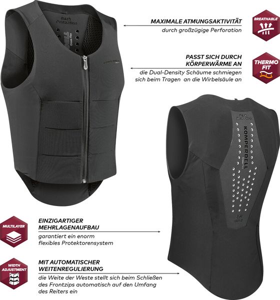 "The Ballistic Flexfit Men by Komperdell is the ideal companion for anyone who values safety and comfort. This multi-layered Cross FlexFit 6.0 back protector is made from an innovative adaptive Dual-Density Foam that offers optimum protection with maximum freedom of movement. The intelligent construction of the protector adapts perfectly to the shape of the body and thus ensures unparalleled comfort, even during longer activitiesu00e4."