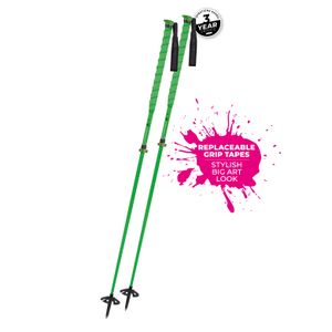 "Thanks to its robust carbon construction, the pole guarantees stability and durability, while the interchangeable grip tapes offer individual customization options. Whether you are skiing in pristine deep snow or on groomed slopes, the BIG ART Carbon Team ensures optimum grip and control. Make a stylish statement and improve your skiing experience with this innovative product from Komperdell"