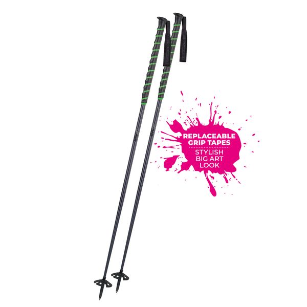 "Perfect ski pole for freeriders with a robust aluminum shaft and customizable design thanks to various tapes."
