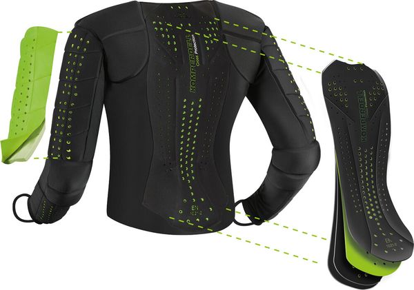 "The Full Protector Slalom Shirt Long jr. by Komperdell offers young skiers optimum protection on the slopes. This specially developed slalom shirt is equipped with integrated shoulderand arm padding, which provides additional protection in the event of falls or collisionsu00f6u00dfen. The integrated protector ensures a high level of safety without restricting freedom of movement."