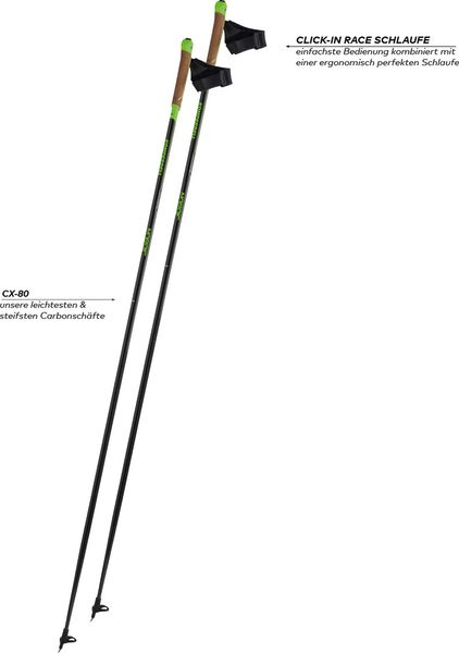 "The innovative Click-In loop makes it quick and easy to click in and out, which is particularly beneficial during intensive training sessions. The CS-80 shaft, uncut, offers the option of individual adjustment to ensure the perfect swing and comfort. With this pole, you are well equipped to achieve your sporting goals and take your performance to the next level."