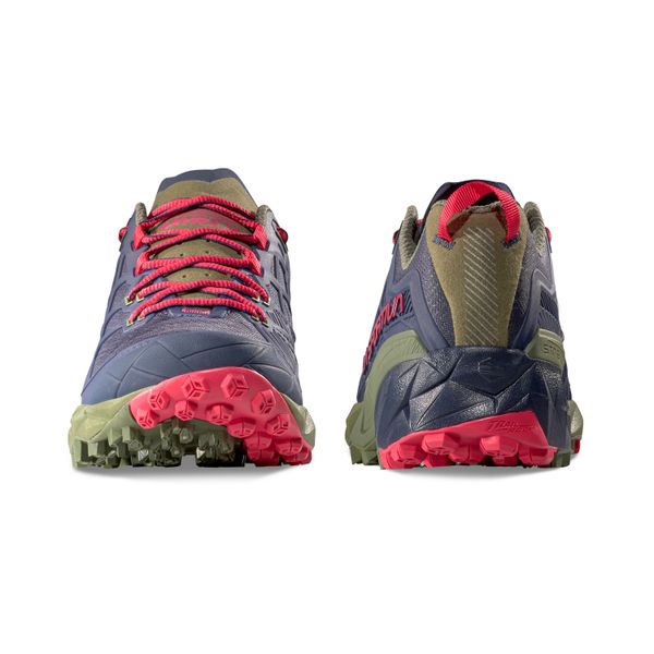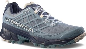"The Akyra II Woman by La Sportiva is the ideal companion for all women who don't want to compromise on protection, speed and mobility when hiking. The shoe impresses with its KPU 3D Gridu2122 in the upper material, which in combination with the Impact Brake Systemu2122 in the sole ensures outstanding stabilityu00e4t and protection. Thanks to the Trail Rockeru2122 and the comfortable and flexible fit, every step is supported with additional energy, making longer hikes a pleasureu2122. This women's hiking boot offers the perfect balance between robustness and lightness, ideal for demanding hikes and outdoor adventures."
