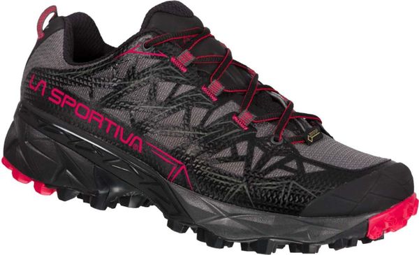 Akyra is a waterproof footwear with GORE-TEX membrane for winter trail running. Structured and protective, it is suitable for ultra trails, ultra marathons and long training sessions in the cold season. Akyra is particularly enveloping, comfortable and protective and is designed for long missions in off-road terrain. The upper in water-repellent and non-slip mesh is very enveloping and structured with its 3 layers, which go from the inside to the outside, while the seamless construction provides comfort. The innovative MicroLite Skeleton™ applications, dynamically follow the movements of the foot and the structuring Flex-Guard™ applications minimize weight while providing a barrier against abrasion that can occur when running over roots and rocks. Exceptional stability is provided by TrailCage System™ technology, which is located between the two shank layers. It provides structure and good embedding of the foot and is integrated in the lacing system. The sole, developed by the la Sportiva R&D department has the new grippy shoe profile FriXion XT with Impact Brake System, has exclusive design and Trail Rocker technology, which supports the natural tread "heel outside - toe inside" during running. Cushioning, protection and comfort, 3 sides of a perfect geometry: the origami on which the general design is inspired. With Akyra, winter running becomes an art.