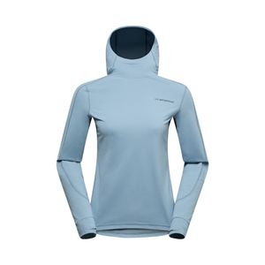 "The hoody is equipped with thoughtful details, such as integrated thumbholes and a helmet-compatible hood with ponytail opening, which offer maximum protection without compromising comfort. The HeiQ Mint technology ensures that you feel fresh all day long, no matter how long your adventures last. Whether hiking or climbing, this hoody is perfectly tailored to the needs of active women."