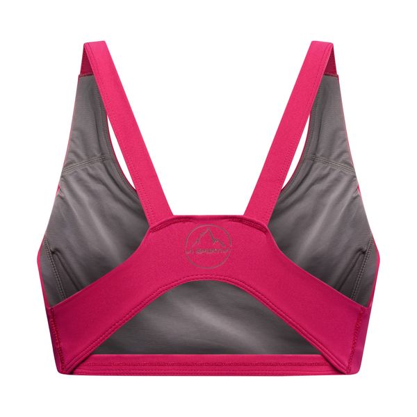 "The Cosmosis Bra from La Sportiva is the perfect companion for active women who value comfort and performance. With its thick, comfortable straps and open back design, this sports bra offers sufficient support without constriction, making it ideal for women with broad shoulders. The Cosmosis collection, inspired by a Boulder Canyon classic, combines durable nylon with luxurious, slightly compressive Lycra that adapts to your movement. A meshlining also ensures breathability and keeps you comfortable and cool, whether hiking, bouldering or climbing."
