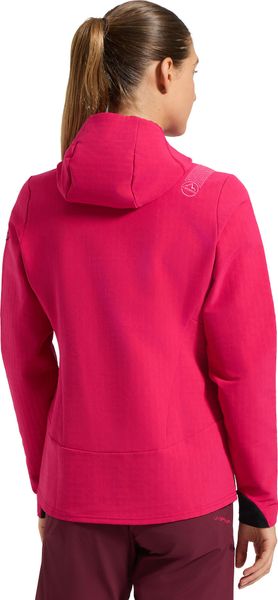 "The Descender Storm Jacket Women by La Sportiva is the ideal thermal midlayer for women who ski tour and freeski in cold and windy conditions. Made from the innovative TechStretchu2122 Storm fabric, this jacket offers comprehensive protection from the elements and is also abrasion-resistant. These features ensure exceptional lightness and comfort, which is essential during strenuous activities in the snow. Whether you're climbing to the summit or enjoying the descents, the jacket keeps you warm and mobile."