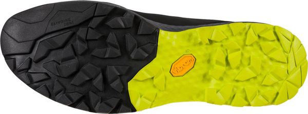 "The sole and midsole package are equipped with a double EVA that provides shock-absorbing compression at the heel and a stabilizer in the forefoot area. The front part of the midsole is combined with a TPU layer that also acts as a stabilizer in the climbing zone, as a medial shank and as a rock protection layer in the forefoot area. The Vibramu00e MegaGrip and Idrogrip dual compound provides the perfect combination of grip and durability, while the pronounced heel facilitates braking on the descent and ensures better grip on the ascentu00e."