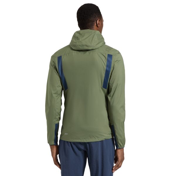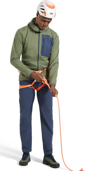 "Men's jacket for climbing and mountaineering, wind-protected and breathable with helmet-compatible hood."