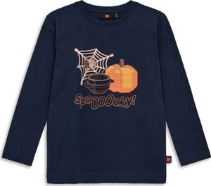 "A special highlight of the T-shirt is the playful print on the front, which impressively brings the LEGO universe to life. The print shows a pumpkin and a spider web made from LEGO bricks, giving the shirt a unique charm. This creative print makes the T shirt a real eye-catcher and ensures that little adventurers feel completely at ease in their outfit."