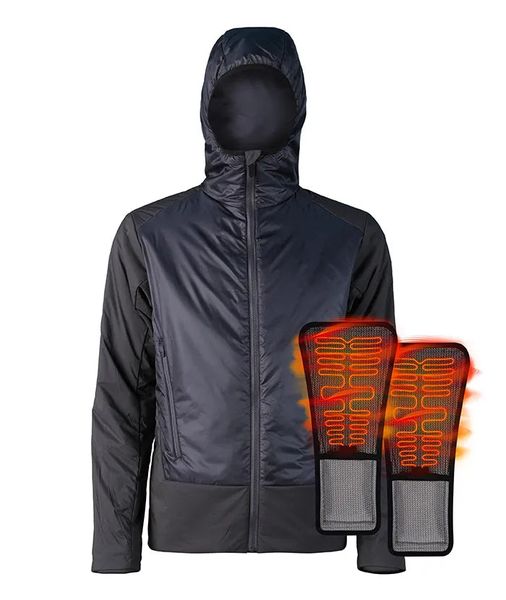 "Men's jacket with Primaloft insulation and heat pads, ideal for skiing and work, wind and water repellent."