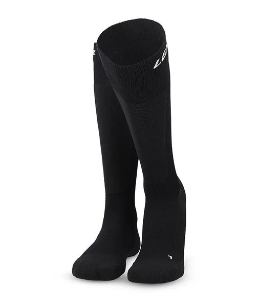 "The socks are anatomically knitted left and right to ensure a perfect fit and feature a linked toe that creates a seamless toe area. This minimizes friction and ensures an undisturbed skiing experience. For additional protection and comfort, the toe and heel area are padded, while the wide active cuff and the ring bandage in the midfoot area provide a secure hold."