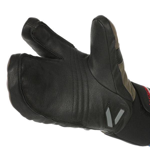 "Experience exceptional comfort and protection during your winter sports activities with the Off Piste Leather Trigger, a masterpiece developed in collaboration with freestyle skier Alex Ferreira. These gloves combine the unique design of the Off Piste Leather Trigger with a bold, performance-oriented identity that comes straight from the halfpipe and backcountry. The innovative threefinger construction offers the warmth of a mitten and the dexterity of a glove, so you can easily operate straps or grip ski poles without sacrificing insulation."