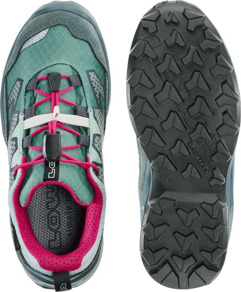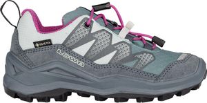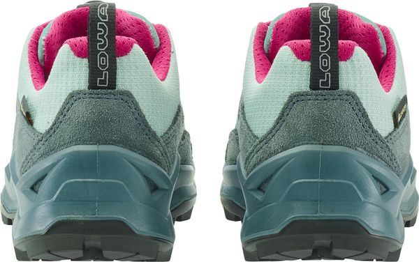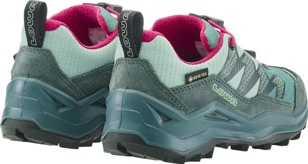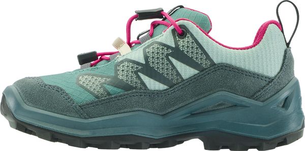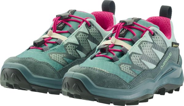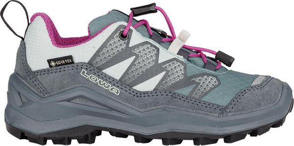 "The Maddox Pro GTX LO JR also scores points with a practical quick lacing system that allows children to put the shoe on quickly and easily. The low-cut shaft height ensures freedom of movement and the newly designed textilesuedeshank guarantees a comfortable fit, even on longer outingsu00fcgen. The PU midsole offers optimum cushioning so that even uneven paths can be mastered without any problems. Parents can rely on Lowa's proven quality, which stands for durability and resistance."