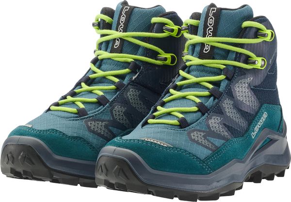 "The Maddox Pro GTX Mid JR from Lowa is the ideal companion for active children in everyday life and leisure. The shoe combines a grown-up, sporty look with maximum functionality to meet the needs of young adventurers. The sturdy textilesuedeshank with soft collar ensures a perfect fit and a high level of comfort, even when worn for longer periods. Thanks to the waterproof GORE-TEX membrane, children's feet stay dry even in rainy weather"