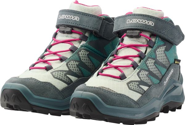 "The Maddox Pro GTX Mid VC JR children's boot from Lowa combines sporty design with outstanding functionality and is the ideal companion for little adventurers. The practical Velcro fastener makes it quick to put on and take off, so that little ones are ready for new discoveries in no time at all. The sturdy textilesuedeshank with soft collar ensures a perfect fit and a high level of comfort, even on long outings"