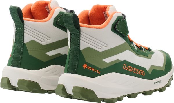 "The Trailux GTX Mid JR from Lowa is the ideal companion for adventurous children who like to be active outdoors. Whether playing in the playground, romping around in the park or exploring new trails, this shoe offers optimum comfort and protection. Equipped with a lightweight DYNAEVAu00ae midsole, it provides first-class cushioning and supports hours of running, jumping and playing without fatigue. The grippy LOWArubber outsole with dynamic lug design offers excellent grip and makes every step safer, regardless of the surface"